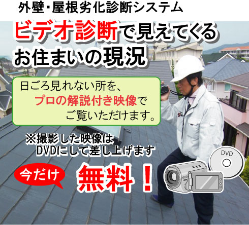 私どもが行っているおすまいビデオ診断は、日頃お客様があまり見ることができない箇所を塗装の専門知識がある建築のプロが撮影し、解説をした映像をご家族でお好きな時間に見ていただきご判断いただけるシステムです。